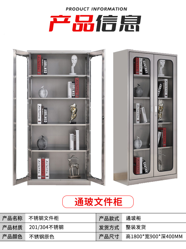 不銹鋼文件柜通玻
